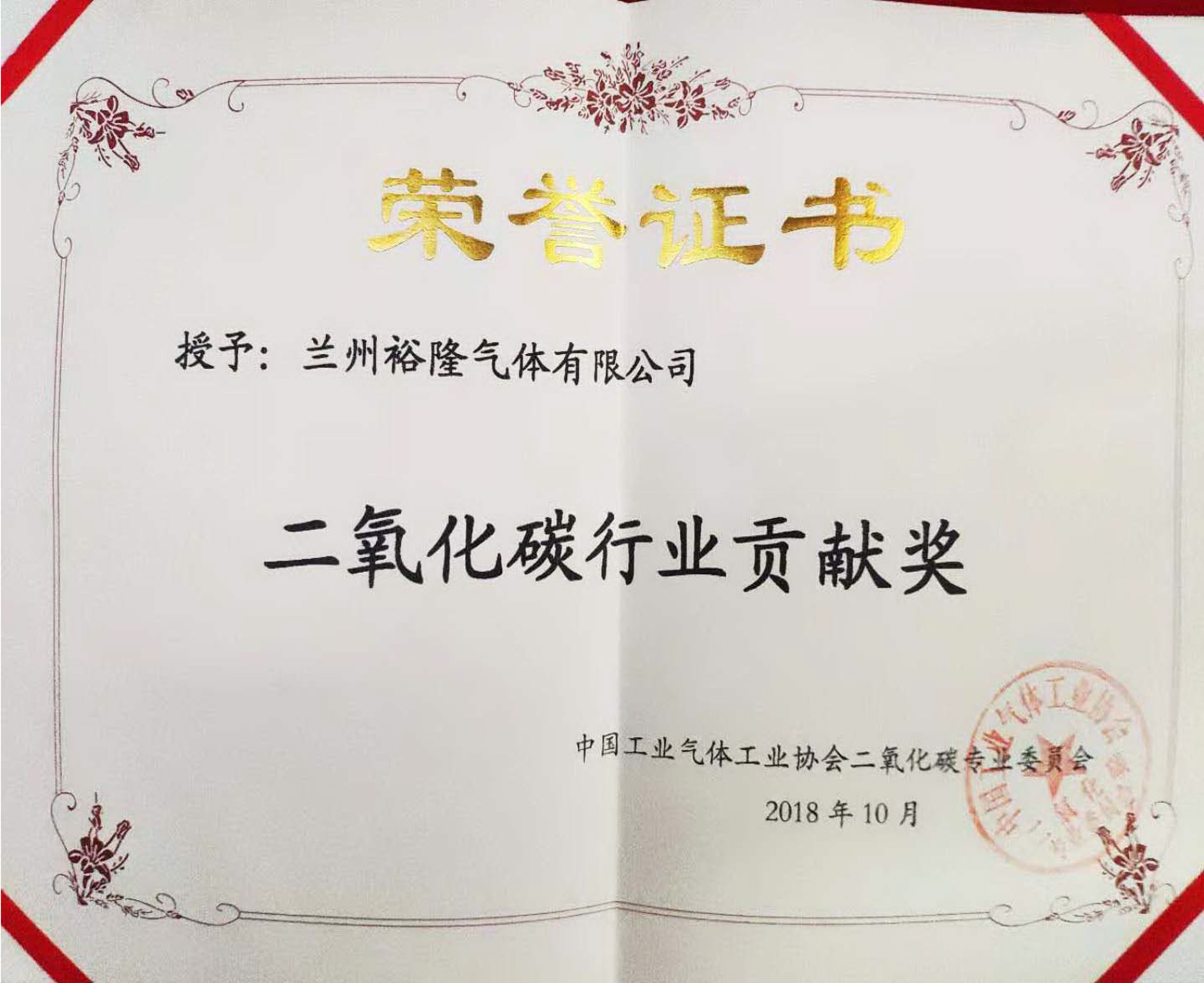 大會組委會對蘭州裕隆氣體股份有限公司在二氧化碳領(lǐng)域近20年的拼搏奉獻給予高度評價,授予蘭州裕隆氣體股份有限公司《二氧化碳行業(yè)貢獻獎》。此獎得到了業(yè)內(nèi)的廣泛認可。